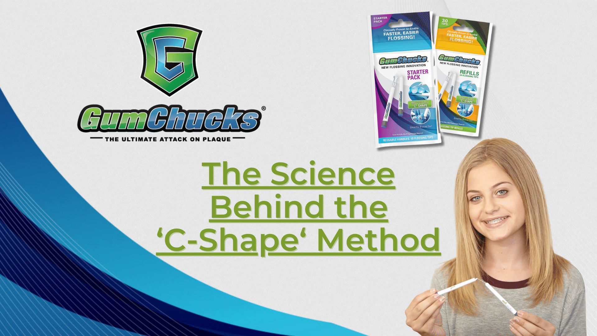But why is the C-Shape so important? Think of each tooth like a cylinder where traditional floss only skims the flat surface between two teeth. This method, however, wraps the floss around the curve of each tooth and cleans the areas most prone to plaque buildup. The C-Shape, found in GumChucks revolutionary flossing tools, also helps floss glide smoothly below the gumline without bruising sensitive tissues.